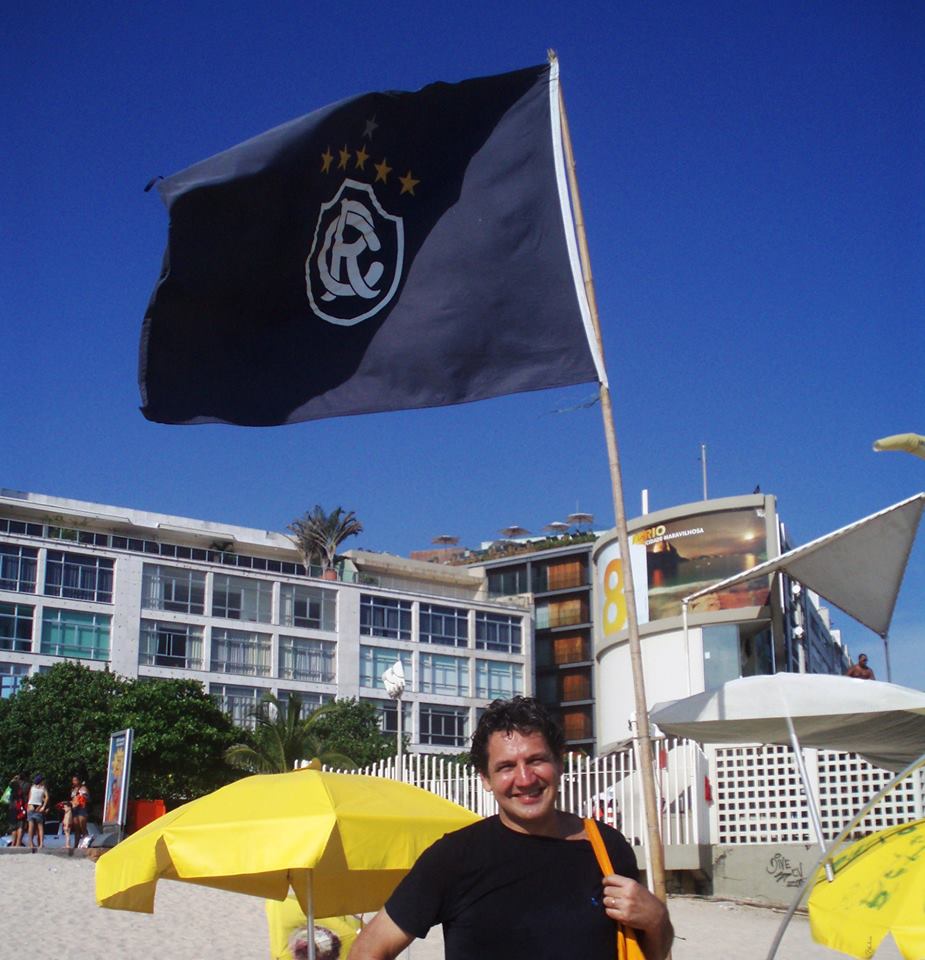 Em férias no Rio, o amigo DJ Paulo Brasil (Cultura FM) aproveita para posar ao lado da bandeira azulina, hasteada no Posto 8 da praia de Ipanema.