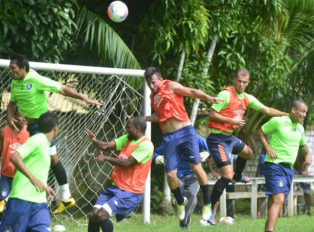 Uma dividida no treino de ontem praticamente tirou o meia-armador Athos do jogo, causando um tremendo prejuízo para Charles Guerreiro. O técnico perde uma excelente chance de avaliar o rendimento de Athos junto ao atacante Leandro Cearense, que muitos defendem ser o titular na Arena da Amazônia, domingo. Pelas atuações recentes, Athos também é nome a ser avaliado para entrar de cara no confronto pela Copa Verde. (Fotos: MÁRIO QUADROS/Bola)