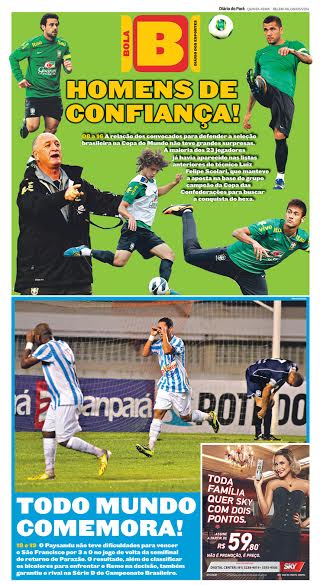 “E saiu a convocação. Tão revolta quanto água de poço e tão surpreendente quanto novela da tarde. Hoje em dia gosto muito mais da copa como evento de interação social do que propriamente da Seleção. A inevitável distância que os euros impuseram foi aos poucos me afastando. Jamais torcerei contra, mas não me peçam pra enfeitar rua que eu não vou”.