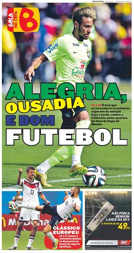 O Brasil, que não engrenou até aqui, deixa a impressão de que precisa de uma vitória consagradora para resgatar de vez o espírito que conduziu a equipe na Copa das Confederações. Quis o destino que o adversário tenha por característica jogar e deixar jogar. A Colômbia de Peckermann não tem méritos, chegou até aqui por força de um futebol ofensivo e pragmático. Em comparação com outras seleções colombianas, a atual tem menos craque, mas é mais objetiva, não perde muito tempo com firulas e exibicionismos. Nunca um time colombiano chegou tão longe, com reais possibilidades de ir às semifinais de uma Copa. Deu a infelicidade apenas de encarar o Brasil, anfitrião do torneio e ávido por afirmação neste momento decisivo da competição.