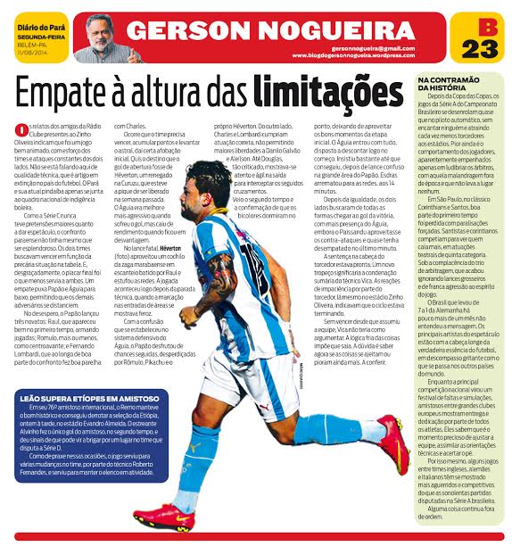 Os relatos dos amigos da Rádio Clube presentes ao Zinho Oliveira indicam que foi um jogo bem animado, com esforço dos times e ataques constantes dos dois lados. Não se está falando aqui de qualidade técnica, que é artigo em extinção no país do futebol. O Pará e sua atual pindaíba apenas se junta ao quadro nacional de indigência boleira.