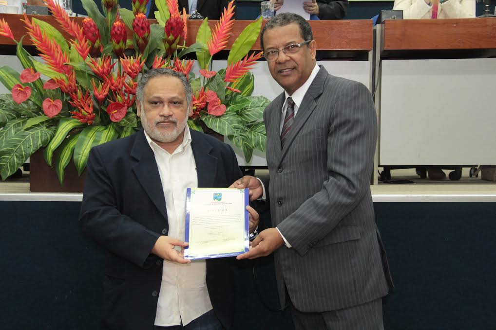 Ao lado dos companheiros Carlos Estácio e Isaac Sena (Rádio Clube) e Toninho Costa (RBATV), recebi na manhã desta segunda-feira o diploma e a comenda Isaac Soares, concedida pela Câmara Municipal de Belém a jornalistas e radialistas. A indicação de meu nome foi do vereador Paulo Queiroz, presidente da Casa, e contou com a aprovação unânime dos 35 vereadores. Em nome de meus bravos colegas de Redação, agradeci a generosidade da escolha, partilhando com os mais de 200 jornalistas do grupo RBA a honraria, afinal não se faz jornalismo sozinho. A comenda Isaac Soares é uma homenagem ao pioneiro do colunismo social no Pará, com quem tive a honra de conviver na redação de O Liberal no final dos anos 70. A premiação é uma forma de reconhecimento aos serviços prestados por profissionais de comunicação à sociedade paraense. (Fotos de Ricardo Amanajás/DIÁRIO)