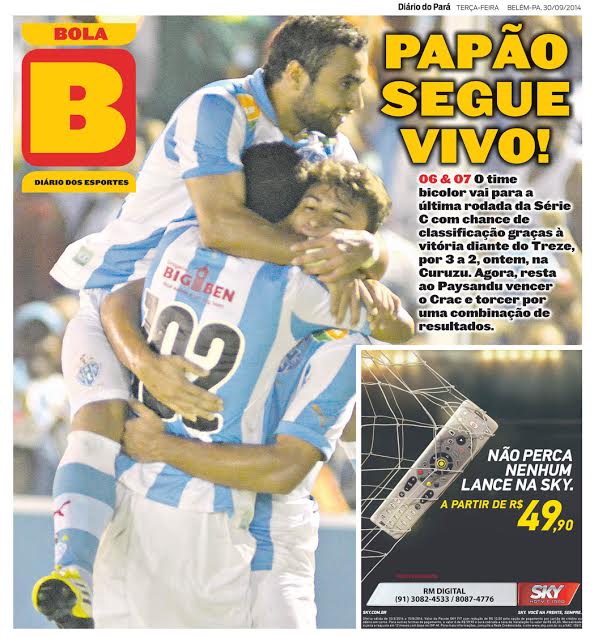 Foi um sufoco danado, mas Papão e Treze fizeram um jogo eletrizante, não pela qualidade técnica, mas pela intensidade e nervosismo. Até dez minutos antes do final, o empate prevalecia e tirava do Papão qualquer possibilidade de classificação no Grupo A da Série C. O gol de Rômulo aconteceu quando o desespero já se fazia presente, mas fez a torcida soltar o grito que estava preso na garganta e deu novo alento ao time na competição.