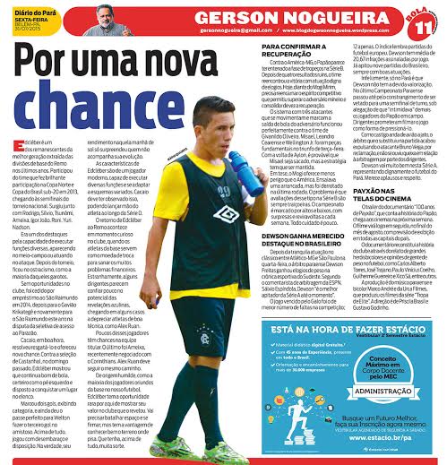 Infelizmente, só no Pará é que Dewson não tem a devida valorização. No último Campeonato Paraense passou até pelo constrangimento de ser vetado para uma semifinal de turno, sob alegação de que “intimidava” demais os jogadores do Papão em campo. Dirigentes prometeram filmar o jogo como forma de pressioná-lo.