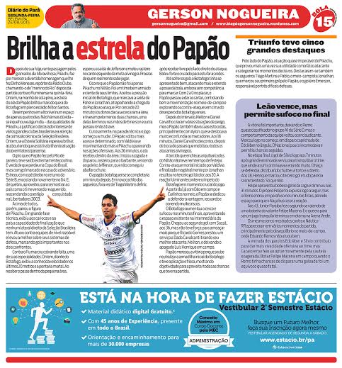 Desempenhos em alto nível num espaço de apenas quatro dias. Não há mais dúvida – se é que houve algum dia – das qualidades de Pikachu, a justificar o declarado interesse de vários grandes clubes brasileiros e a atenção da comissão técnica da Seleção Brasileira. Ontem, se a Estrela Solitária esperava brilhar, acabou tendo que assistir a brilhante atuação do jovem lateral paraense.