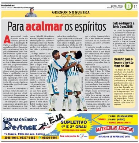 Na coluna de segunda-feira, informei erradamente que o Independente havia conquistado a vaga para disputar a Série D neste ano. Na verdade, o time de Tucuruí se garantiu para o Brasileiro de 2018. Na edição deste ano, os representantes paraenses serão São Raimundo e São Francisco.