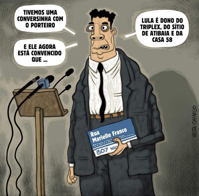Lula — Veja, eu vi a matéria da Globo ontem contra o Bolsonaro. A Globo fez uma reportagem e, nessa reportagem, mostra o que aconteceu e diz que Bolsonaro não estava em casa, porque ele estava votando em Brasília. Queria que a Globo fosse honesta comigo como ela foi com o Bolsonaro. Não sou contra que a imprensa fale mal de mim o quanto quiser, se tiver verdade. Se o Lula fez uma merda, digam sem rodeios, mas expliquem o que ele fez. Agora, se ele não fez, não mintam, e a Globo faz muitos anos que mente a meu respeito, mente deliberadamente. Tem uma professora da Universidade Federal de Minas Gerais que está fazendo ou fez a tese dela – recebi uma cópia aqui, nem a conheço. Ela mostra que tem mais de duzentas horas do Jornal Nacional contra o Lula e nem um minuto favorável. Isso agora, depois que deixei a presidência, porque passei a incomodá-los mais do que quando era presidente. Eu não consigo entender qual é o ódio. A única explicação que tenho é a ascensão social do povo brasileiro. Ou que, quando entrei na presidência, tinha 348 meios de comunicação que recebiam dinheiro da Secom, nós passamos para quase 4 mil. E foi pouco, porque precisaria fazer mais. Agora está mais grave, porque agora é a Globo, a Bandeirantes, o SBT.