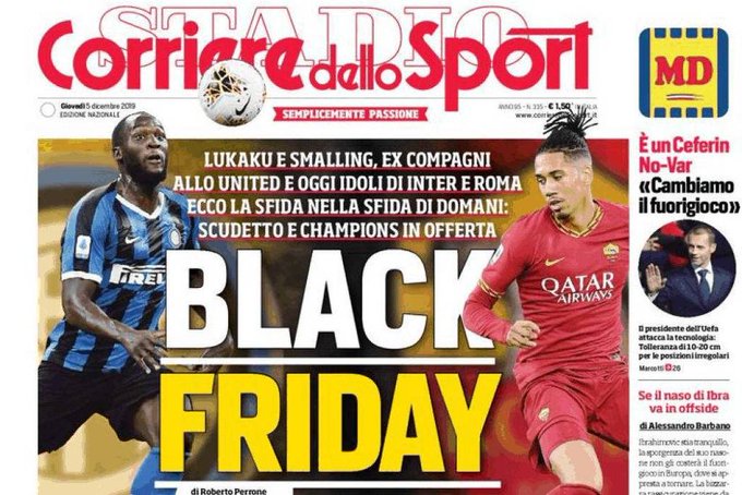 A manchete do jornal Corriere dello Sport, da Itália, despertou críticas no mundo esportivo e fora dele também. Jornal resolveu brincar com o tema da Black Friday usando as figuras dos jogadores Lukaku e Smalling. Diante da repercussão ruim, o Corriere alega inocência garantindo que não teve nenhuma intenção de insultar os atletas.