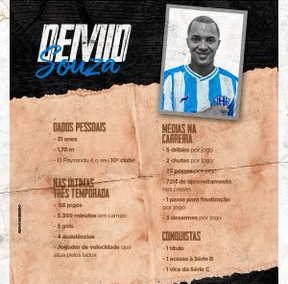 Paulista da cidade de Diadema, Deivid Anacleto de Souza, de 31 anos de idade, terá o Paissandu como o seu 10° clube como profissional, o último deles foi o Guarani-SP. Nas últimas três temporadas, disputou 66 jogos, com 5.369 minutos de atuação, cinco gols marcados e quatro assistências. Jogador que tem como principais características drible e velocidade, ele atua pelos lados do campo.