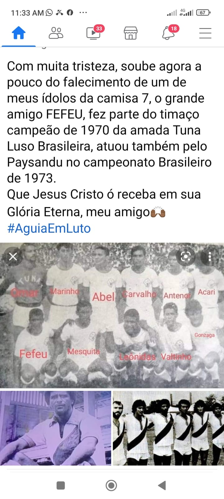 Nas redes sociais, muitas pessoas se manifestaram em homenagem a Fefeu, que foi um ponteiro arisco e driblador, com facilidade para chegar à linha de fundo. Obteve destaque no time da Tuna dos anos 70, ao lado de Mesquita, Antenor, Leônidas, Abel, Marinho e Gonzaga. Defendeu também o PSC no Campeonato Brasileiro de 1973.