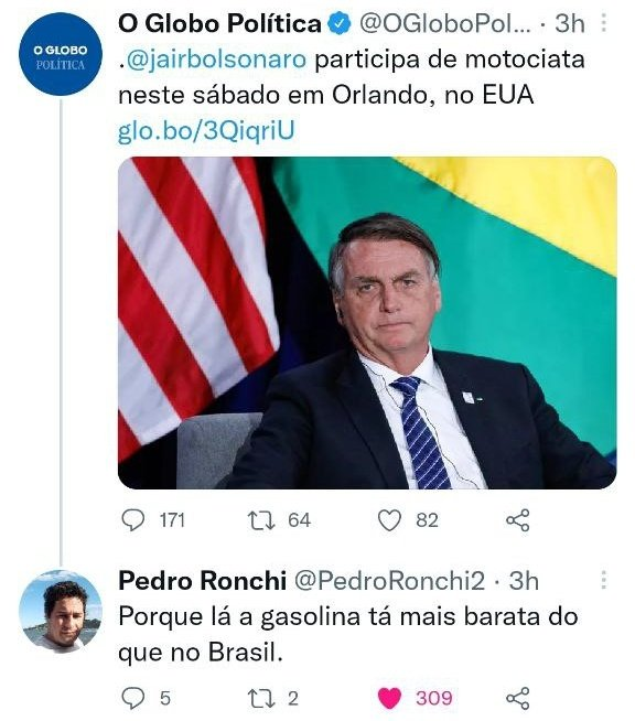 Na postagem, Ruffalo também marcou o presidente dos Estados Unidos, Joe Biden, e disse esperar que ele “responsabilize seus homólogos” — uma referência ao presidente brasileiro, Jair Bolsonaro. Em viagem aos Estados Unidos para a Cúpula das Américas, Bolsonaro participa neste sábado (11) de motociata em Orlando, no estado da Flórida.