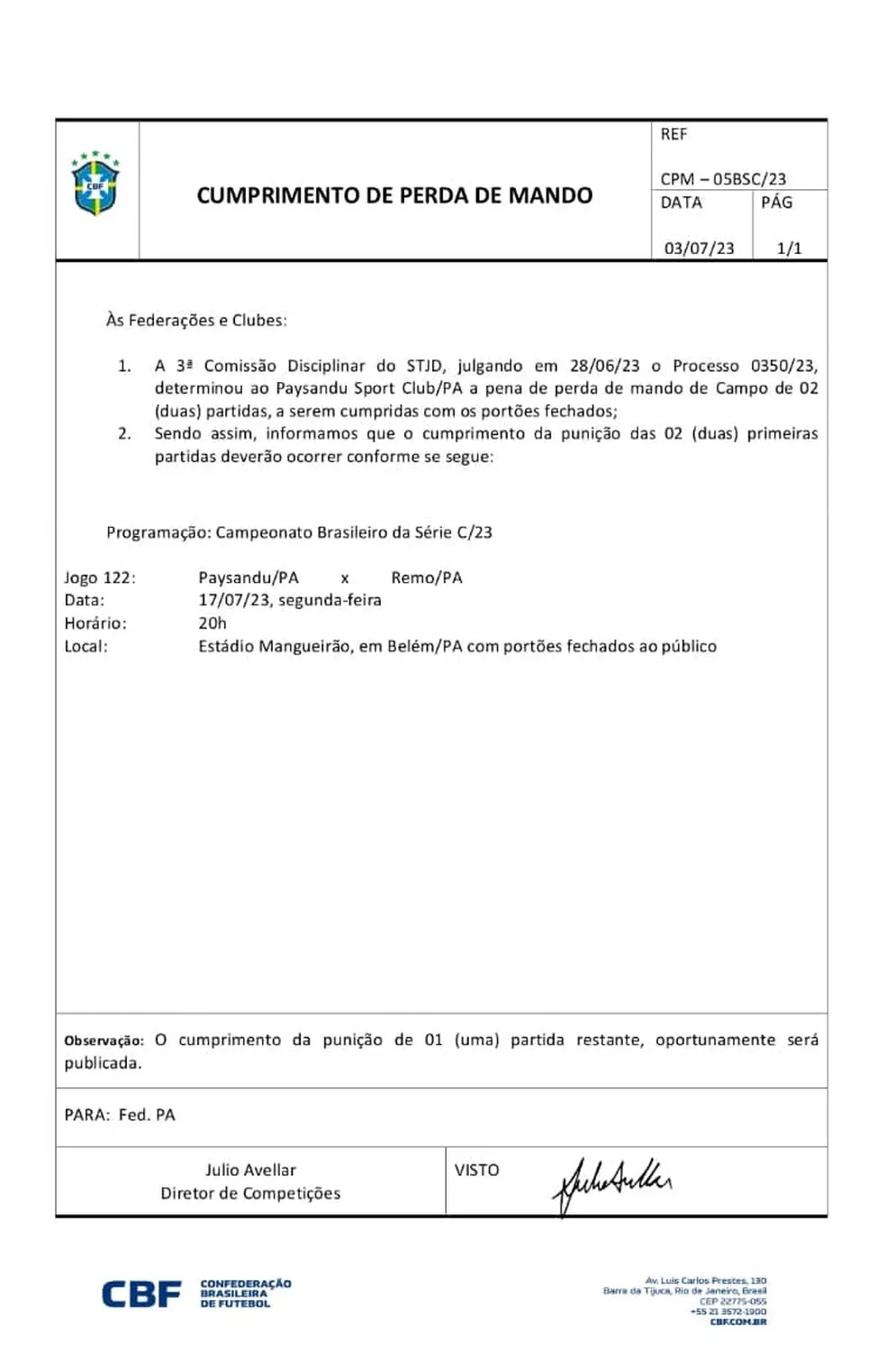 Ambos terão um jogo-chave para definir planos dentro da competição: o clássico do dia 17 de julho, com portões fechados, no Mangueirão. Em caso de empate, a dupla Re-Pa verá suas chances (já precárias) minguarem ainda mais. Se houver um vencedor, este ganhará impulso para tentar uma arrancada final, mas o derrotado ficará em situação desesperadora, além de conviver com a crise que certamente se instalará.