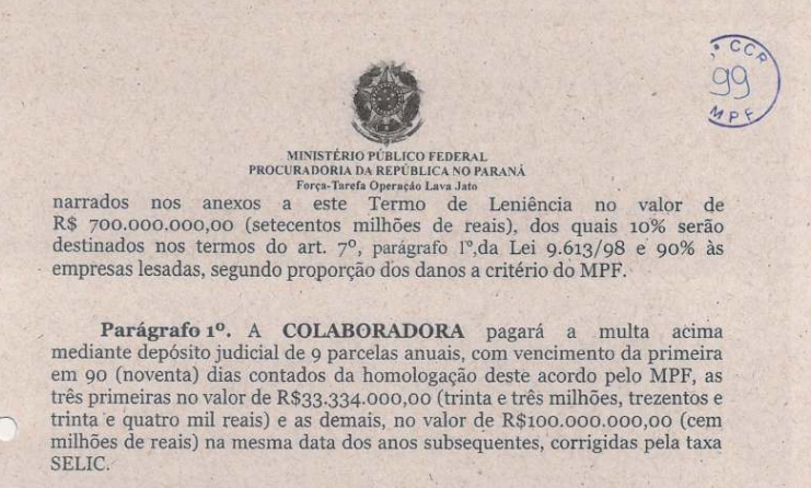Com uma rota melhor delineada, os recursos serão destinados à União e às entidades lesadas. Mais de 330,3 milhões de reais por propinas; 905,9 milhões de reais por influência em contratos fraudulentos; 36,2 milhões de reais por multa administrativa – Lei Anticorrupção – e 123,6 milhões de reais por multa civil – Lei de Improbidade Administrativa.