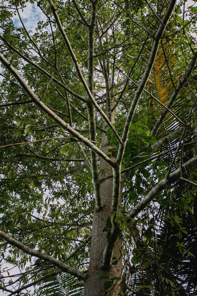 A primeira árvore que o agricultor plantou quando chegou ao local foi uma sumaúma, espécie amazônica presente na cosmologia de muitos povos indígenas, que tem como uma de suas principais características a retenção de água nas raízes de sustentação, que ficam fora da terra, as sapopemas. Acompanhando o crescimento da árvore, que pode atingir até 50 metros de altura, formou-se um brejo que antes não existia no local.