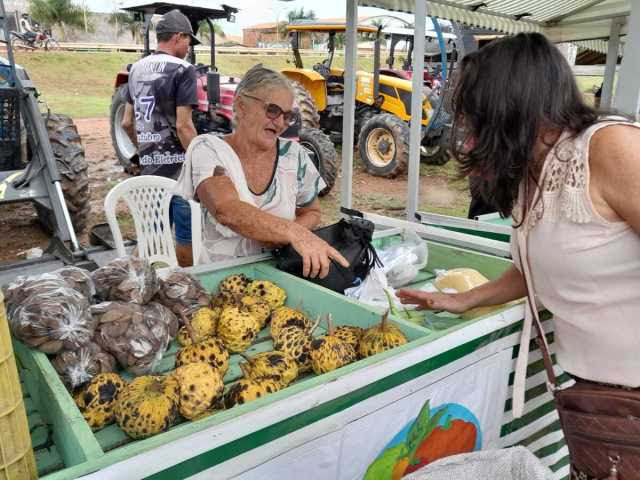 O casal de idosos Gilson e Lúcia, moradores do Lote 96, levaram parte de sua produção. Eles contam que passaram a vida à procura de terra para plantar e, desde que ocuparam a área de 50 campos de futebol, em 2016, plantam uma variedade tão grande que supre praticamente toda a sua alimentação.