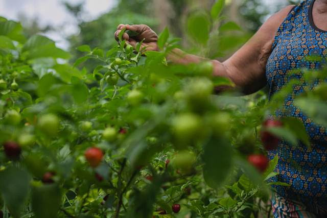 Alguns dos alimentos plantados por Lúcia e Gilson, entre eles pimenta, algodão, limão, graviola