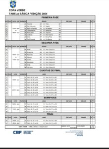 Saiu a tabela básica da 10ª edição da Copa Verde, divulgada nesta quinta-feira pela CBF. O formato do torneio continua inalterado, reunindo clubes do Norte, Centro-Oeste e Estado do Espírito Santo. Os representantes paraenses são Águia de Marabá (campeão estadual), Clube do Remo (vice) e Paysandu (3º) já conhecem os primeiros adversários. O Azulão marabaense é o primeiro a jogar, no dia 21 ou 28 de fevereiro, contra o Rio Branco, em jogo válido pela primeira fase.