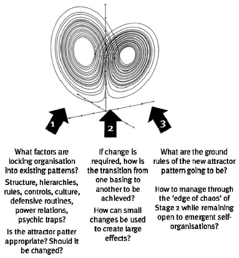 O que importa aqui é que a Teoria do Caos inclui o estudo de sistemas em que os mesmos fatores podem causar mudança – ou, alternativamente, não causar nenhuma mudança. São sistemas que permanecem em um determinado estado ou saem deste estado, sem que os pesquisadores consigam identificar a razão.