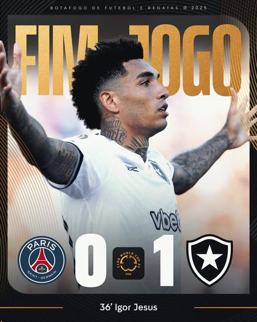 O Botafogo surpreendeu o mundo, na noite desta quinta-feira (19), ao vencer por 1 a 0 o Paris Saint-Germain, atual campeão da Champions League, em jogo válido pela 2ª rodada da Copa do Mundo de Clubes. Com a vitória histórica, os campeões da Libertadores chegam aos seis pontos no grupo B, com 100% de aproveitamento, e estão muito perto da vaga nas oitavas de final.