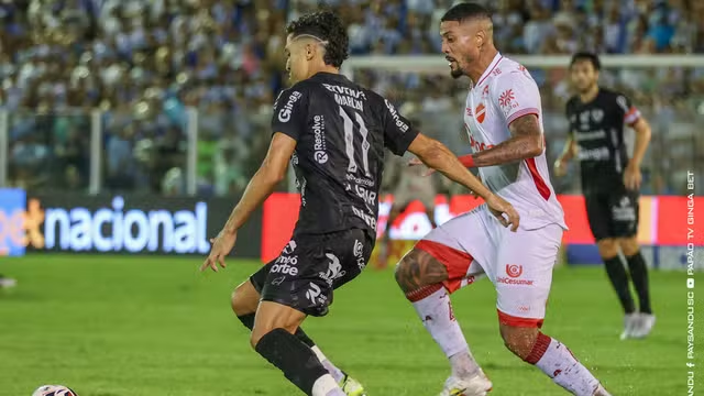 Foi uma atitude individual que gerou o melhor momento do Papão na primeira etapa. Diogo Oliveira saiu da área e enganou a marcação. Viu Denner se infiltrando pela esquerda e deu uma assistência perfeita. Pena que o meia retardou o chute e foi bloqueado pela zaga na pequena área.