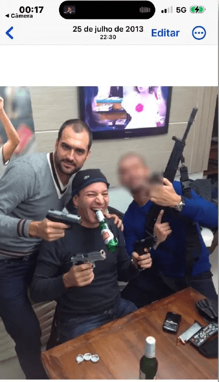 Os documentos não esclarecem local, circunstância ou a regularidade do armamento, e não imputam crime a Danilo pelo simples fato de estar na foto; o registro, porém, aproxima personagens centrais das duas frentes da investigação. Os peritos descobriram que a fotografia foi feita em 2013, quando Danilo ainda era jogador do Corinthians.