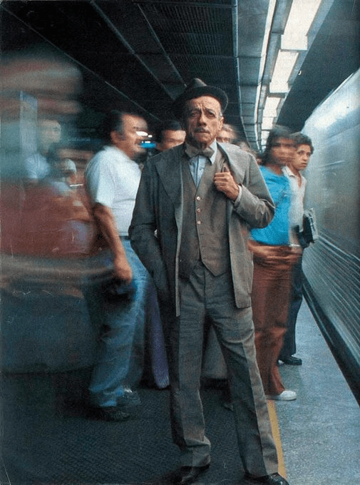 O cantor e compositor Adoniran Barbosa em uma estação de metrô em São Paulo, no final da década de 1970.